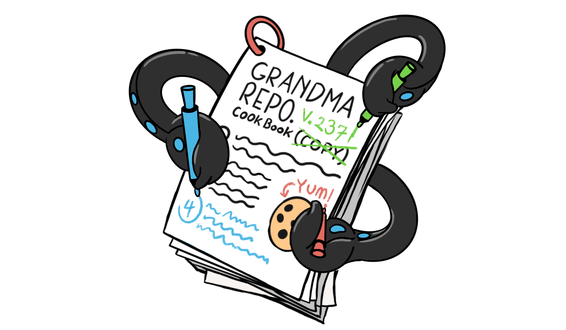 A repository (repo) is the place where the code is stored. In my baking analogy, the repository is the cookbook or text file where the main recipe is recorded. Each developer has their copy of the code on their computer, but the main copy is stored somewhere online (most of the time) where all developers working on a project can access it. Developers can download a copy of the repository (referred to as “cloning”), make changes on their computer, and upload the changes they made.